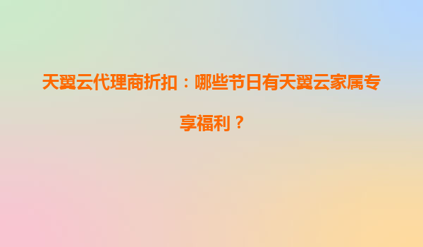 2025-08-12天翼云代理商折扣:节日家属专享福利全解析 一、天翼云的核心优势 作为中国电信旗下的云计算品牌,天翼云凭借以下核心优势成为企业和个人用户的首选: ...