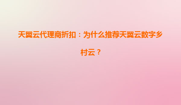 2025-08-12天翼云代理商折扣:为什么推荐天翼云数字乡村云? 引言 随着数字化转型的加速推进,云计算已成为推动各行业发展的核心动力。在乡村振兴战略的背景下,天翼云凭...
