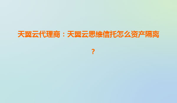 2025-08-12天翼云代理商:天翼云思维信托如何实现资产隔离? 一、资产隔离的核心价值与场景 在数字化转型浪潮中,企业数据安全与合规需求日益凸显。资产隔离通过物理或逻辑层面的资源划分,确保核...