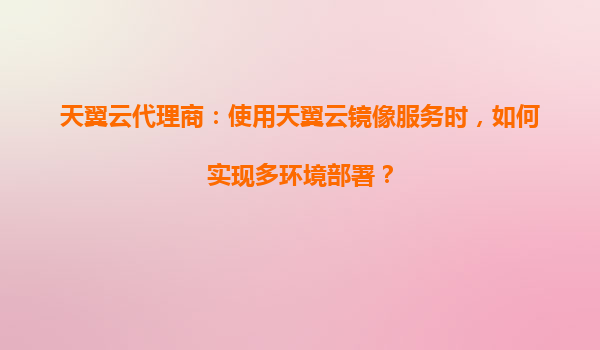 2025-08-12天翼云代理商:使用天翼云镜像服务实现多环境部署指南 一、天翼云镜像服务的核心优势 作为中国电信旗下云服务品牌,天翼云镜像服务在实现多环境部署场景中具备以下独特优势: 国家级安全体系-通过等保...