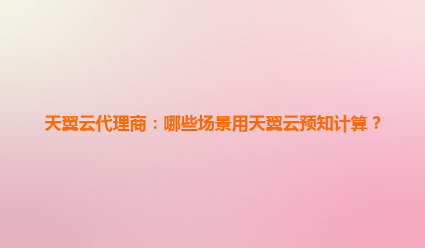 2025-08-08天翼云代理商:哪些场景适合使用天翼云预知计算? 一、什么是天翼云预知计算? 天翼云预知计算是中国电信天翼云基于人工智能和大数据分析推出的智能化云计算服...