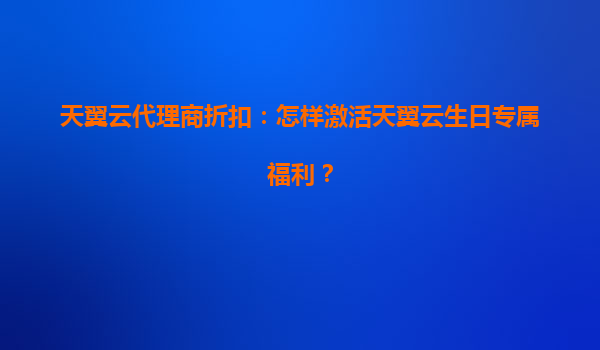 2025-08-08天翼云代理商折扣:怎样激活天翼云生日专属福利? 一、天翼云的核心优势 天翼云作为中国电信旗下的云计算品牌,凭借其强大的基础设施和丰富的行业经验,为企业及个人用户提供稳定、安全、高效的云...