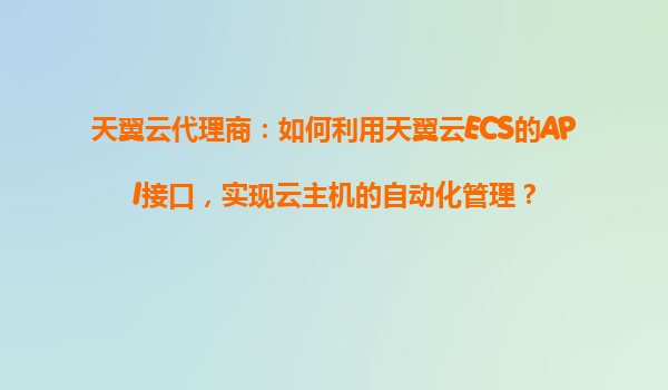 2025-10-30天翼云代理商:如何利用天翼云ECS的API接口实现云主机自动化管理 一、天翼云ECSAPI的概述 天翼云ECS(弹性云服务器)提供了丰富的API接口,允许用户通过编程方式管理云主机资源。这些API覆盖了从创建、...