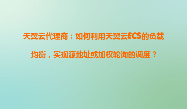 2025-10-30天翼云代理商:如何利用天翼云ECS的负载均衡实现源地址或加权轮询调度 一、天翼云ECS负载均衡的核心价值 天翼云弹性计算服务(ECS)的负载均衡(SLB)功能是企业实现高...