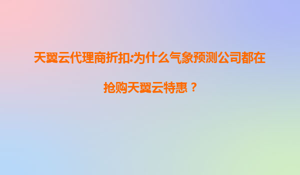 2025-08-06天翼云代理商折扣:为什么气象预测公司都在抢购天翼云特惠? 一、天翼云的核心优势与行业适配性 天翼云作为中国电信旗下云计算品牌,凭借央企背景和全国覆盖的基础设施网络,在稳定性、安全性和本地化服务方面...