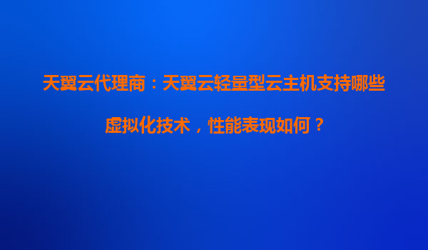 2025-10-30天翼云代理商:天翼云轻量型云主机支持的虚拟化技术与性能表现 引言 随着云计算技术的快速发展,企业对云主机的需求日益增长。天翼云作为中国电信旗下的云计算品牌,凭借其强大的基础设施和技术优势,...