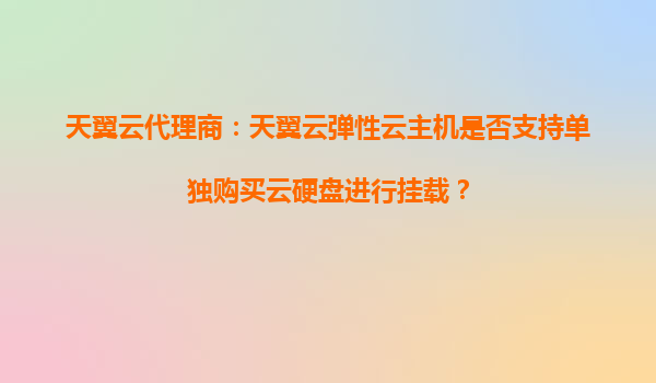 2025-10-30天翼云代理商:天翼云弹性云主机是否支持单独购买云硬盘进行挂载? 一、天翼云弹性云主机的云硬盘扩展能力 天翼云弹性云主机(ECS)作为中国电信旗下的核心云计算产品,支持用户...