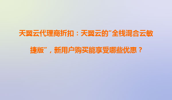 2025-10-30天翼云代理商折扣全解析:全栈混合云敏捷版新用户专享优惠 作为中国电信旗下的云计算服务品牌,天翼云凭借其强大的基础设施和央企背景,已成为企业数字化转型的重要选择。针对新用户,天翼云特别推出了"全栈混合云...