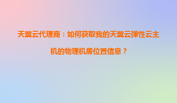 2025-10-30天翼云代理商:如何获取天翼云弹性云主机的物理机房位置信息 一、为什么要关注弹性云主机的物理机房位置? 在云计算时代,企业将业务迁移至云端已成为大势所趋。然而,对于许多企业而言,数据的物理存放...