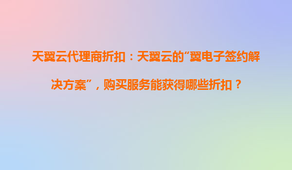 天翼云代理商折扣:揭秘“翼电子签约解决方案”的优惠与核心优势 一、天翼云“翼电子签约解决方案”代理商折扣政策 作为天翼云代理商,客户通过代理渠道购买“...