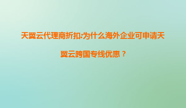 2025-08-04天翼云代理商折扣:为什么海外企业可申请天翼云跨国专线优惠? 引言 随着全球数字化转型的加速,越来越多的海外企业开始寻求稳定、高效的云计算服务来支持其跨国业务。...
