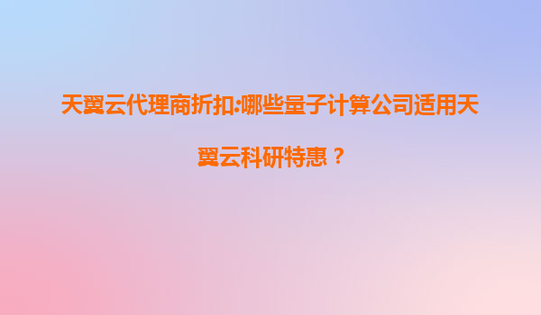 2025-08-04天翼云代理商折扣:哪些量子计算公司适用天翼云科研特惠? 引言 随着量子计算技术的快速发展,越来越多的科研机构和企业开始探索这一前沿领域。然而,量子计算的研究和开发需要强大的计算资源和稳定的云服...
