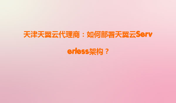 2025-08-04天津天翼云代理商:如何部署天翼云Serverless架构? 一、天翼云Serverless架构概述 Serverless(无服务器架构)是云计算发展的重要趋势,它允许开发者无需管理底层服务器即可运行代码。...