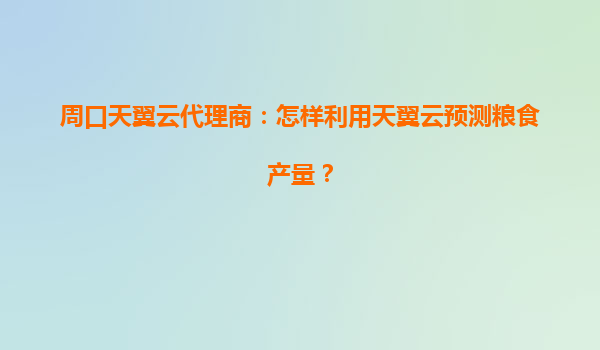 2025-08-02周口天翼云代理商:如何利用天翼云预测粮食产量 引言 粮食产量预测是农业领域的重要课题,直接影响国家粮食安全和农业政策制定。随着云计算、大数据和人工智能技术的快速发展,传统农业正加速向数...