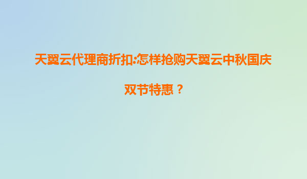 天翼云双节特惠攻略:如何以代理商折扣抢购优质云服务 中秋国庆双节将至,天翼云推出年度重磅特惠活动,此时通过代理商渠道叠加专属折扣,能以超低价格享受企业级云服务。本文将详细介绍抢购技巧,并解析天翼云的...