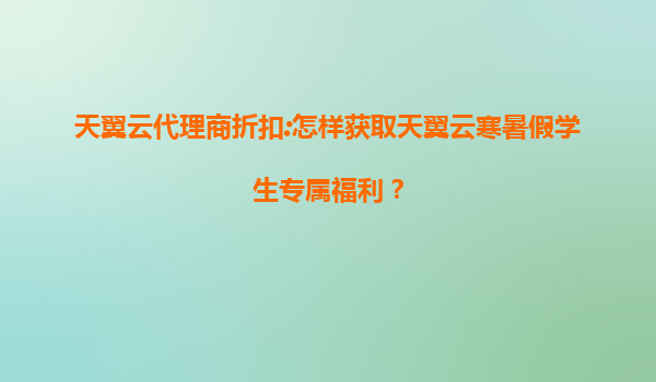 2025-08-02如何获取天翼云寒暑假学生专属福利?——代理商折扣与云端优势全解析 一、天翼云代理商折扣:学生的优惠入口 天翼云作为中国电信旗下云计算品牌,通过代理商体系为学生群体提供专属折扣...