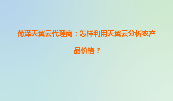 2025-08-02菏泽天翼云代理商:怎样利用天翼云分析农产品价格? 随着农业产业数字化进程的加速,如何利用云计算技术分析农产品价格趋势成为众多企业和农户关注的焦点。作为菏泽地区的天翼云代理商,可以通过天翼云的强大计算能...