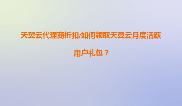 2025-08-01天翼云代理商折扣:如何领取天翼云月度活跃用户礼包? 一、天翼云的核心优势与代理商价值 天翼云作为中国电信旗下的云计算服务品牌,凭借央企背景和强大的技术实力,在数...