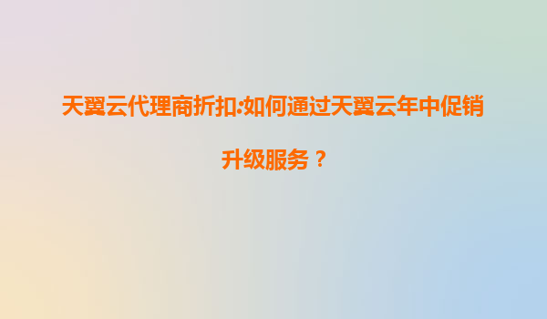 2025-08-01天翼云代理商折扣:如何通过天翼云年中促销升级服务? 一、天翼云的核心优势与代理商价值 天翼云作为中国电信旗下云计算品牌,凭借央企背景、全国覆盖的数据中心资源及高等级安全合规能力,为企业提供稳定...