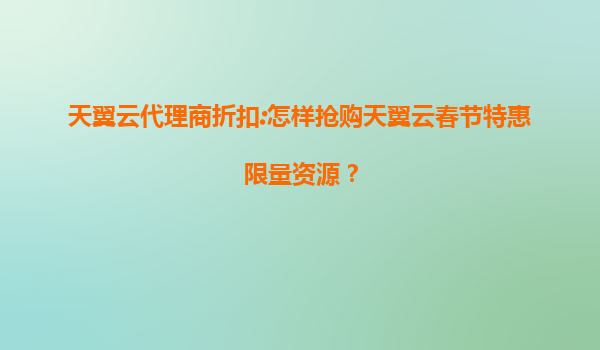 天翼云代理商折扣:怎样抢购天翼云春节特惠限量资源? 一、天翼云春节特惠活动简介 每逢春节前夕,天翼云都会推出"春节特惠"限时抢购活动,通过代理商渠道可享受额外折扣叠加。本次特惠涵盖云服务器、数据库、存...