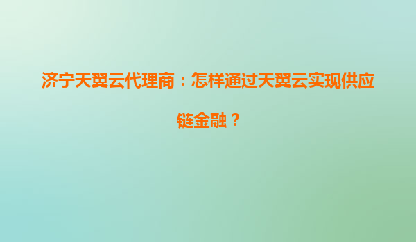 2025-08-01济宁天翼云代理商:如何通过天翼云实现供应链金融创新 一、供应链金融的数字化需求 随着产业互联网的发展,传统供应链金融面临信息孤岛、风控滞后、流程繁琐等痛点。企业亟需通过云计算...