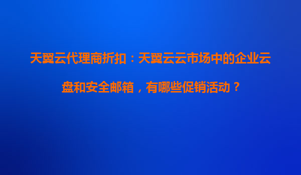 2025-10-29天翼云代理商折扣解析:企业云盘与安全邮箱的优惠活动全攻略 一、天翼云云市场核心产品简介 天翼云作为中国电信旗下的云计算服务品牌,其云市场中的企业云盘和安全邮箱是两大企业级刚需...