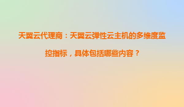 2025-10-29天翼云代理商:天翼云弹性云主机的多维度监控指标 一、天翼云弹性云主机的核心优势 作为中国电信旗下的云计算服务提供商,天翼云凭借其强大的基础设施资源、稳定的网络环境和灵活的弹性计算能力,在云计算...