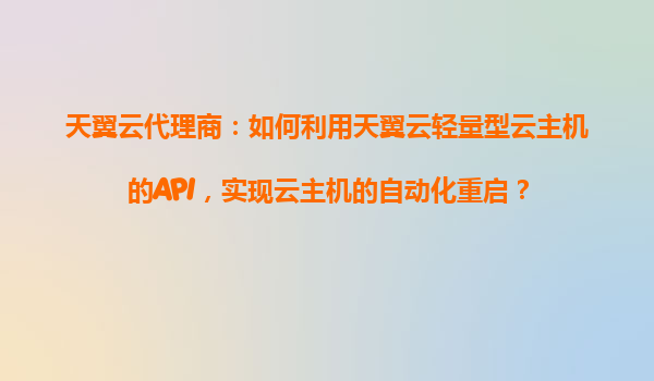 2025-10-29天翼云代理商:利用轻量型云主机API实现自动化重启 在云计算时代,自动化运维已成为企业提升效率的关键手段。作为天翼云代理商,掌握轻量型云主机的API调用能力,能够为客户提供更高效的服务。本文将详细介绍如何通...