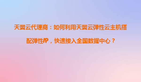 天翼云代理商:如何利用天翼云弹性云主机搭配弹性IP快速接入全国数据中心 随着企业数字化转型加速,云计算已成为业务发展的核心驱动力。天翼云作为中国电信旗下的云计算服务品牌,凭借其强大的基础设施和灵...