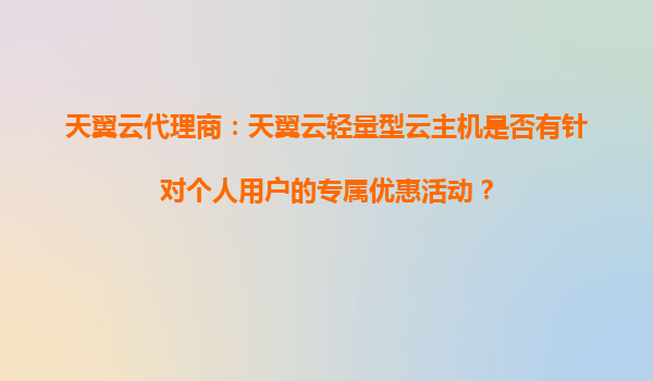 2025-10-29天翼云轻量型云主机:个人用户专属优惠活动与代理服务优势解析 一、天翼云轻量型云主机简介 天翼云轻量型云主机是中国电信旗下云计算品牌推出的高性价比产品,专为个人...