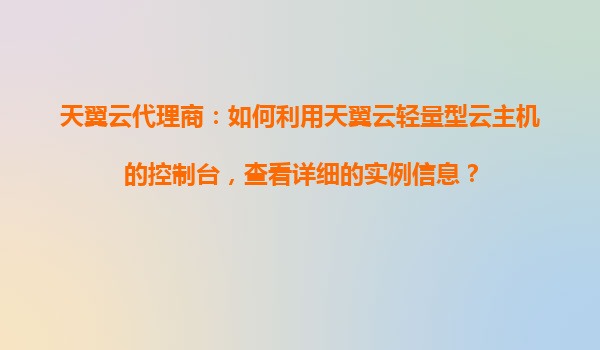 2025-10-29掌握天翼云轻量型云主机控制台:高效查看实例信息的实用指南 天翼云轻量型云主机的核心优势 作为中国电信旗下的云计算服务品牌,天翼云轻量型云主机凭借其高性能、低成本、易管理等特性,成为中小企业及个人开...