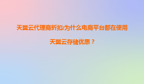 天翼云代理商折扣:为什么电商平台都在使用天翼云存储优惠? 在当今数字化时代,电商平台的快速发展离不开稳定、高效且安全的云存储服务。天翼云作为中国电信旗下的云计算品牌,凭借其强大的技术实力和资源优势,...