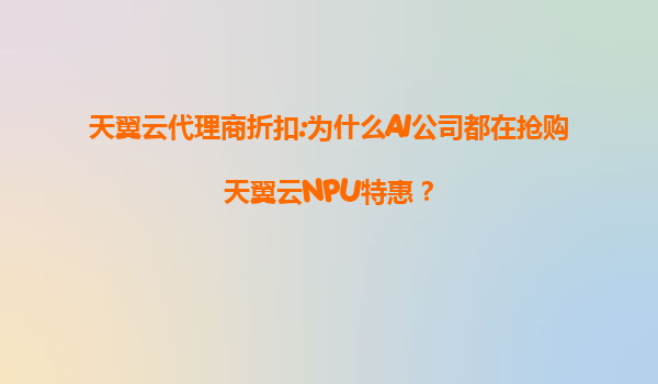 2025-07-29天翼云代理商折扣:为什么AI公司都在抢购天翼云NPU特惠? 引言 近年来,人工智能(AI)技术的快速发展催生了大量AI初创企业和成熟公司的业务扩张。随着模型规模的扩大和...