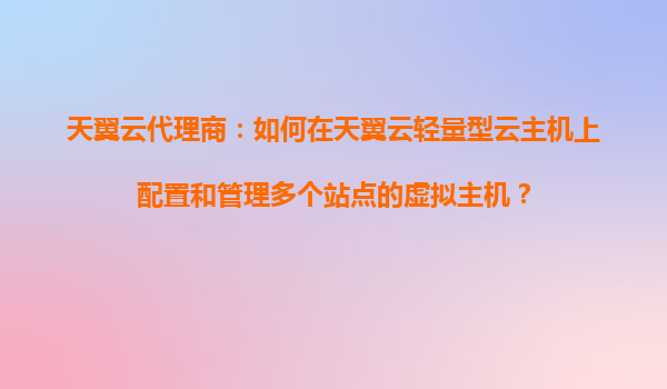 2025-10-29天翼云代理商指南:轻量型云主机多站点虚拟主机配置与管理 一、天翼云轻量型云主机的核心优势 作为中国电信旗下的云计算服务品牌,天翼云轻量型云主机以其高性价比、灵活扩展和安全可靠的特...