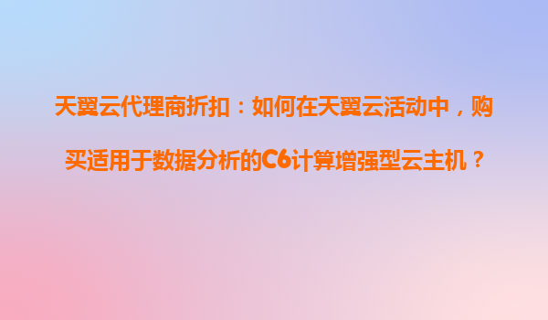 2025-10-29天翼云代理商折扣:如何高效购买适用于数据分析的C6计算增强型云主机? 一、天翼云的优势与C6云主机适用场景 作为中国电信旗下的云计算服务品牌,天翼云凭借以下核心优势为数据分析场景提供可靠支持: 运营商级...