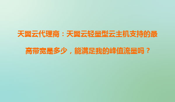 2025-10-29天翼云轻量型云主机带宽解析:代理商优势助力业务峰值流量应对 一、天翼云轻量型云主机的带宽能力 天翼云轻量型云主机作为面向中小企业和个人开发者的高性价比产品...