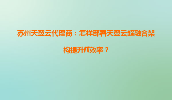 苏州天翼云代理商:怎样部署天翼云超融合架构提升IT效率? 引言 随着数字化转型的加速,企业对IT基础设施的要求越来越高。传统的IT架构往往存在资源利用率低、运维复杂、扩展性差等问题。而超融合架构...