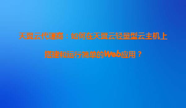 2025-10-29天翼云代理商:如何在天翼云轻量型云主机上搭建和运行简单的Web应用 天翼云轻量型云主机的优势 在云计算日益普及的今天,选择合适的云服务商与云主机类型对于Web应用的搭建至关...
