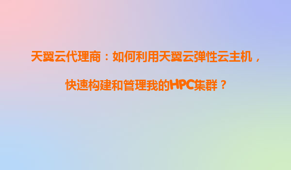 2025-10-29天翼云代理商:如何利用天翼云弹性云主机,快速构建和管理HPC集群 引言:HPC集群的现代化需求 在当前数字化转型的浪潮中,高性能计算(HPC)集群成为科研、工程仿真和人工智能等领域的重要工具。然而,传统...