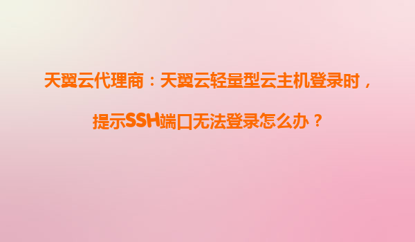 2025-10-29天翼云代理商:天翼云轻量型云主机SSH端口无法登录问题解决方案 一、问题背景与天翼云轻量型云主机的优势 作为天翼云代理商,用户在试用或管理天翼云轻量型云主机时,可能会遇到SSH端口无法登录的情况...