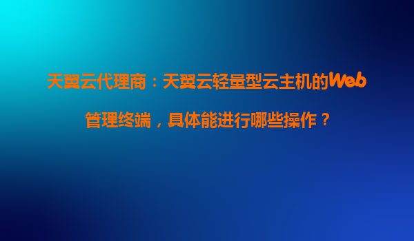 2025-10-29天翼云轻量型云主机Web管理终端:高效管理的核心利器 一、Web管理终端的关键功能 作为天翼云代理商,我们深知轻量型云主机的Web管理终端是用户实现高效运维的核心入口。...