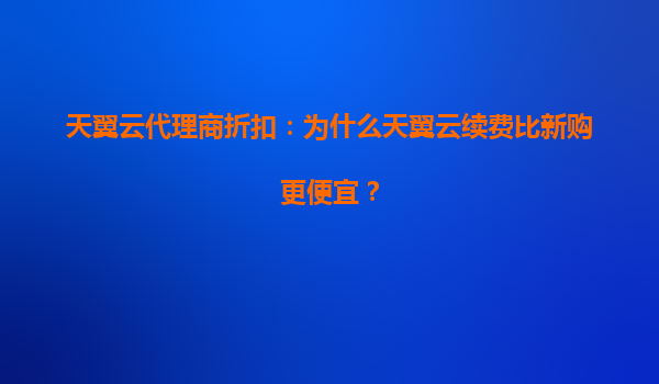 2025-07-22天翼云代理商折扣:为什么天翼云续费比新购更便宜? 在云计算市场竞争激烈的今天,天翼云作为中国电信旗下的云计算服务品牌,凭借其强大的基础设施资源、稳定的网络性能以及完善的本地化服务,赢得了众多企业和个...