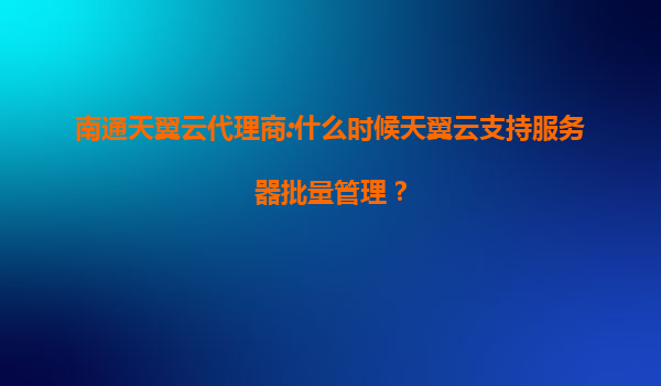 2025-07-21南通天翼云代理商:天翼云何时支持服务器批量管理? 引言 作为中国电信旗下的云计算服务品牌,天翼云凭借其强大的技术背景和本土化服务能力,已成为众多企业和开发者的首选云服务商。对于南通等地的天...