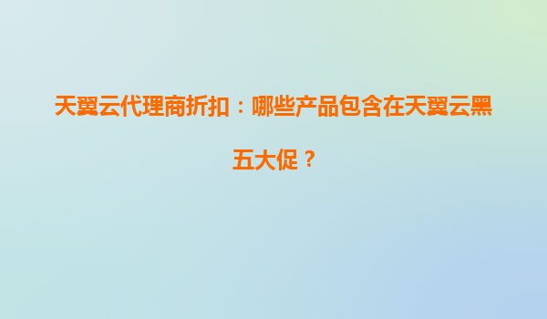 2025-07-21天翼云代理商折扣:哪些产品包含在天翼云黑五大促? 一、天翼云黑五大促活动概述 每年的黑五大促都是企业和个人用户抢购云计算资源的最佳时机。作为国内领先的云计算服务提供商,天翼云在2023年黑五期间推...