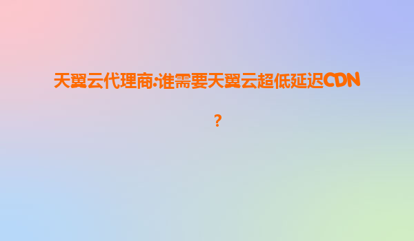 2025-07-19天翼云代理商:谁需要天翼云超低延迟CDN? 一、什么是天翼云超低延迟CDN? 内容分发网络(CDN)是一种通过在全球范围内部署边缘服务器节点,将内容缓存到离用户更近的位置,从而显著降低访问延迟的技术...