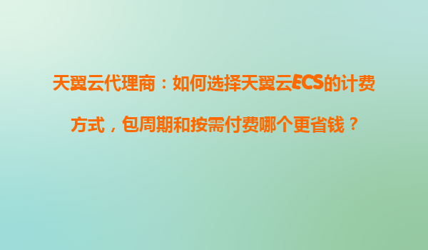 2025-10-27天翼云代理商指南:如何选择天翼云ECS计费方式?包周期与按需付费深度对比 一、天翼云ECS计费方式概述 天翼云作为中国电信旗下云计算品牌,提供弹性计算服务(ECS)时支持两种主流计费模...