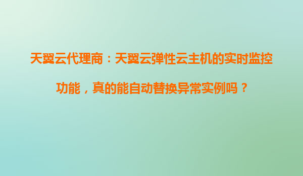 2025-10-27天翼云弹性云主机的实时监控与自动替换:代理商的优势解析 一、弹性云主机实时监控的核心功能 天翼云弹性云主机(ECS)的实时监控功能依托于分布式探...