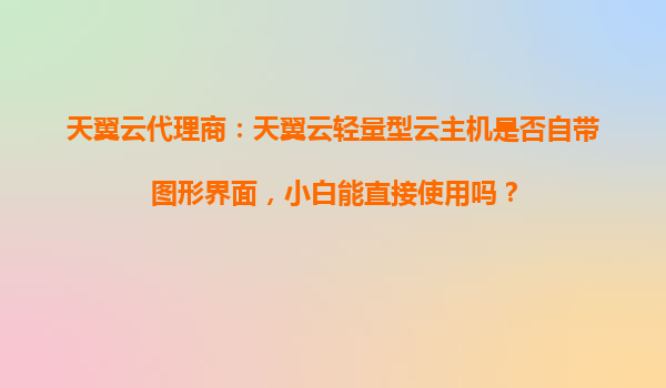 2025-10-27天翼云轻量型云主机是否自带图形界面?小白用户能否直接上手? 一、天翼云轻量型云主机的核心特性 天翼云轻量型云主机是中国电信旗下天翼云推出的面向中小企业和个人开发者的基础云计算服务,主打...