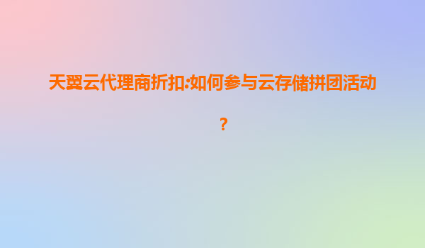 2025-07-10天翼云代理商折扣:如何参与云存储拼团活动? 一、什么是天翼云拼团活动? 天翼云作为中国电信旗下的云计算服务品牌,近年来推出了多种优惠活动以吸引用户,其中“云存储拼团活动”...