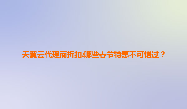 2025-07-08天翼云代理商折扣:哪些春节特惠不可错过? 随着春节的临近,各大云计算服务商纷纷推出节日促销活动,以回馈新老客户。作为国内领先的云服务提供商,天翼云也推出了力度空前的春节特惠活动。本文将详细介绍天...